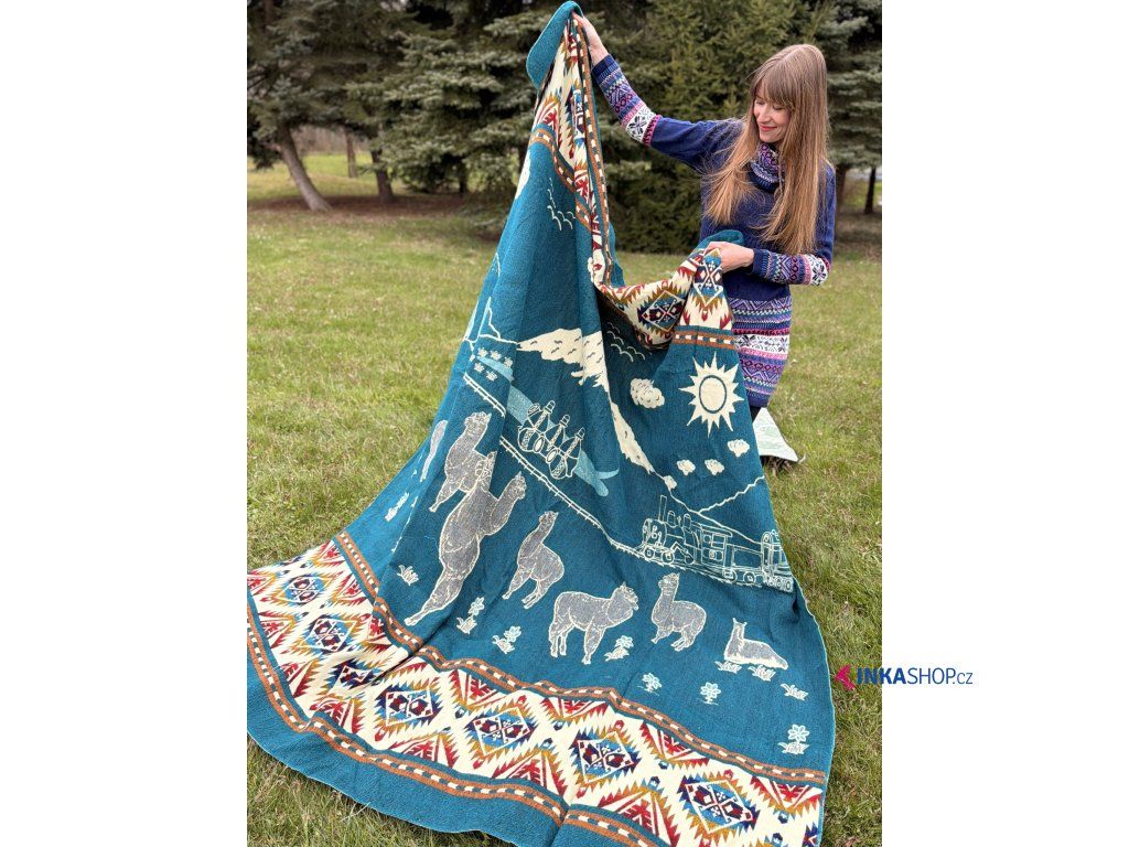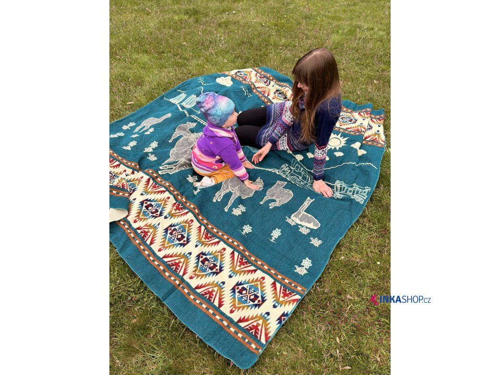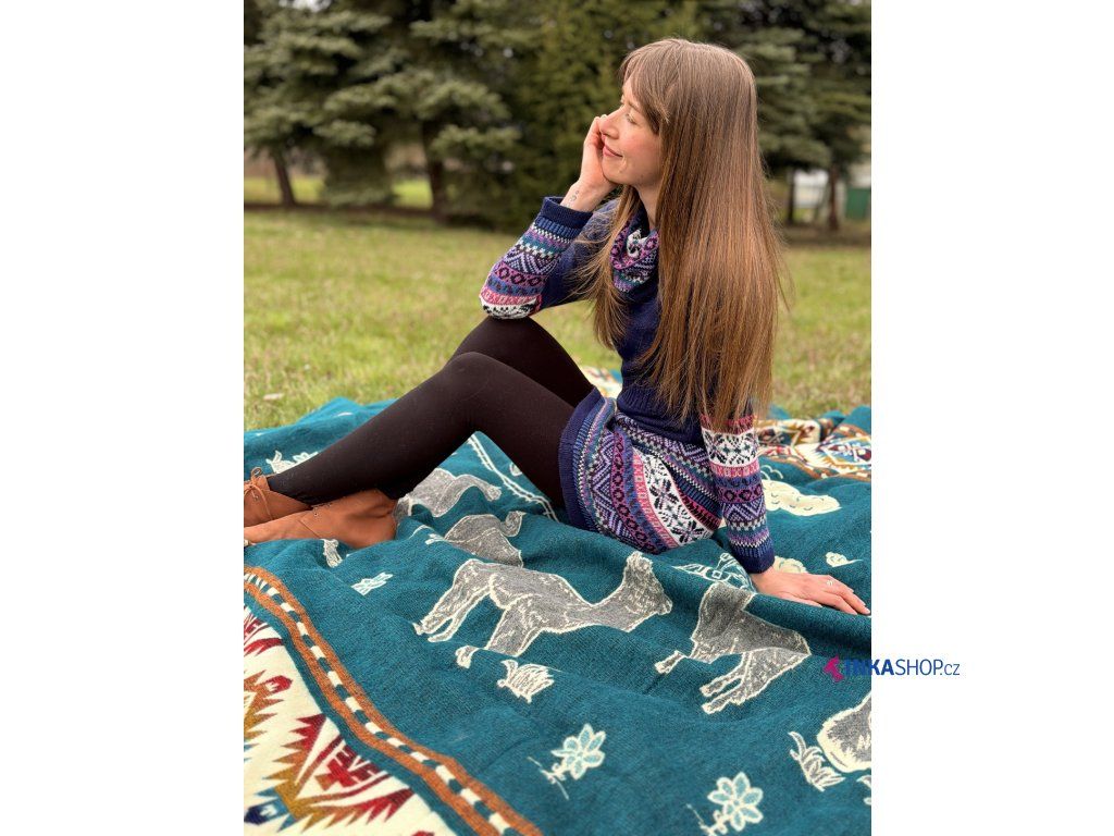 Deka s lamou - smaragdová