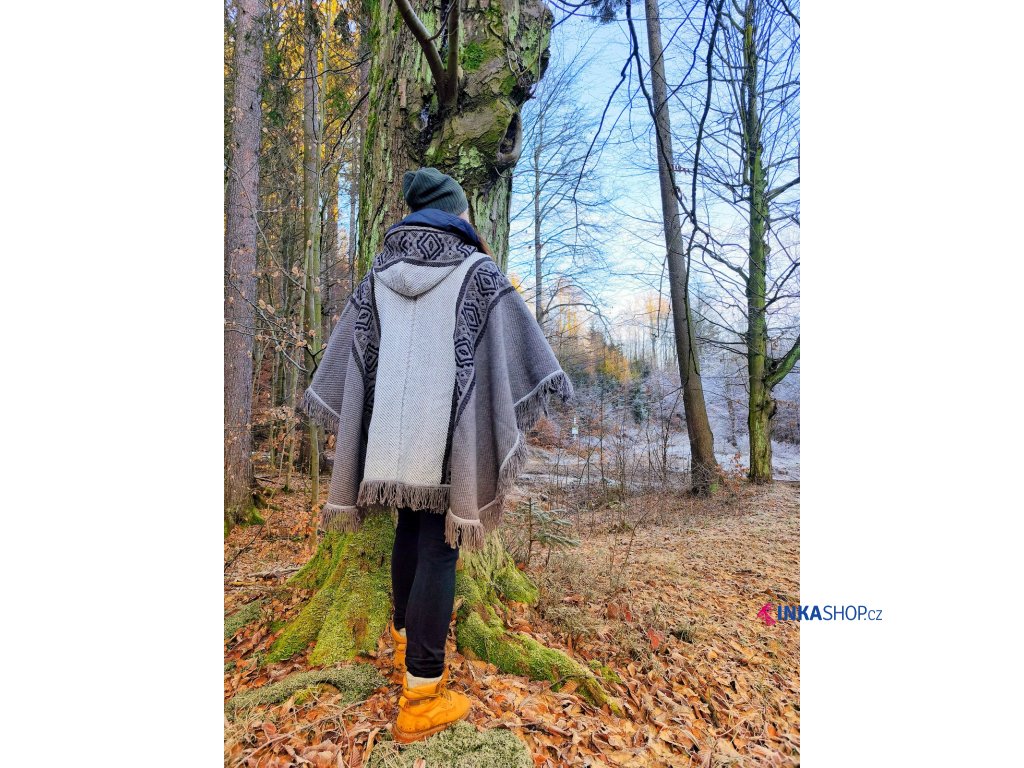 Pončo ze 100% ovčí vlny - rozepínací/zavinovací - hnědé