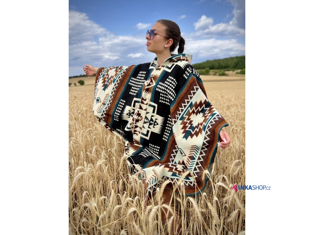Univerzálne pončo s kapucňou a tradičným vzorom
