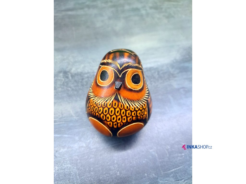 Sovička z vysušenej tekvice. Ručné práce z hôr v Peru.