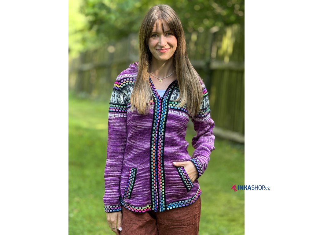 Dámský svetr Cuzco z vlny alpaky - mramorový fialový